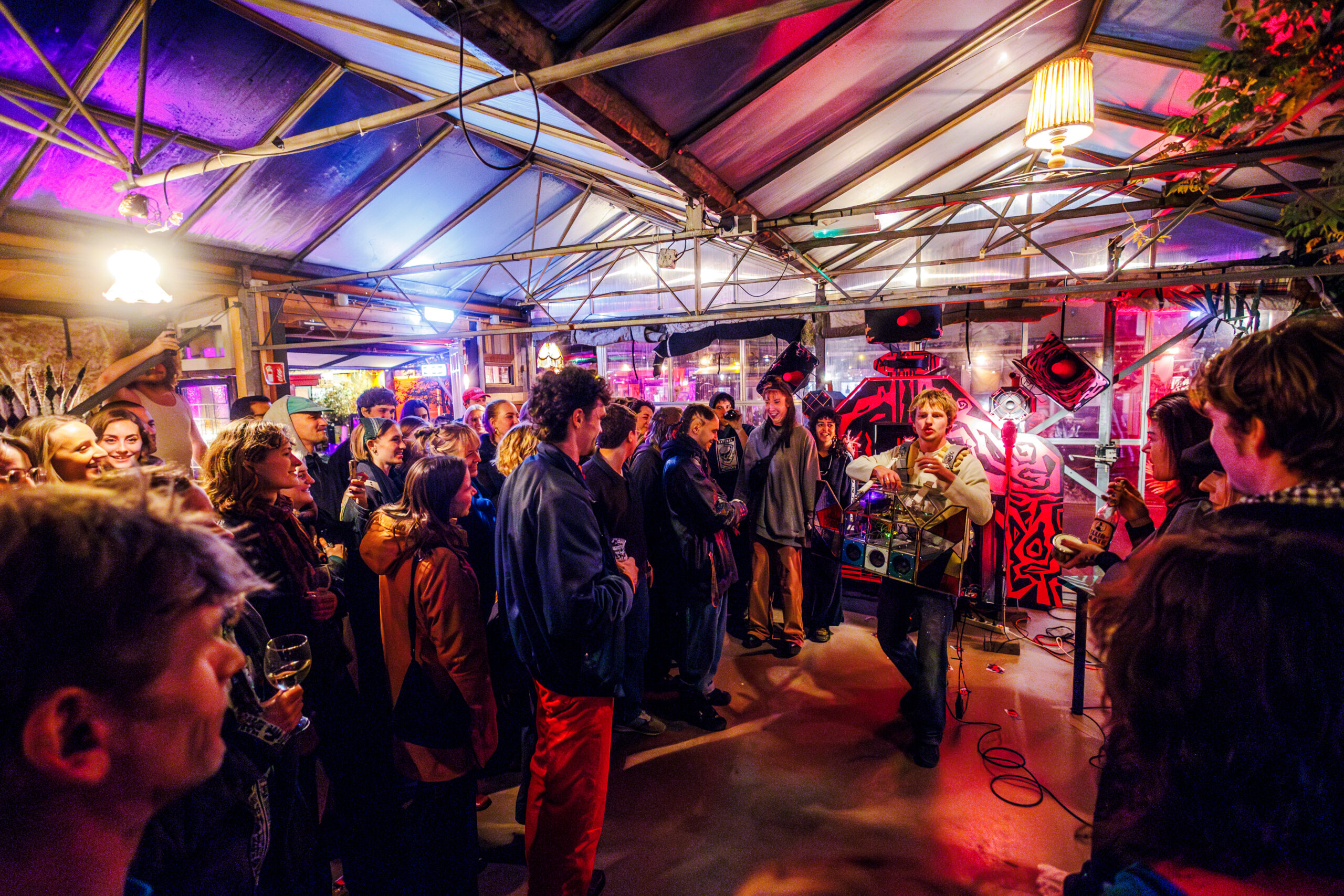 Mees heeft deze muzikale apparaten gebouwd om mensen samen te brengen — niet alleen om te feesten, maar ook om de straat wakker te schudden. Tijdens Uitnacht zal Mees de Rozario twee keer performen, en tussendoor ontstaat een vrolijke chaos met dj’s en verrassingen.