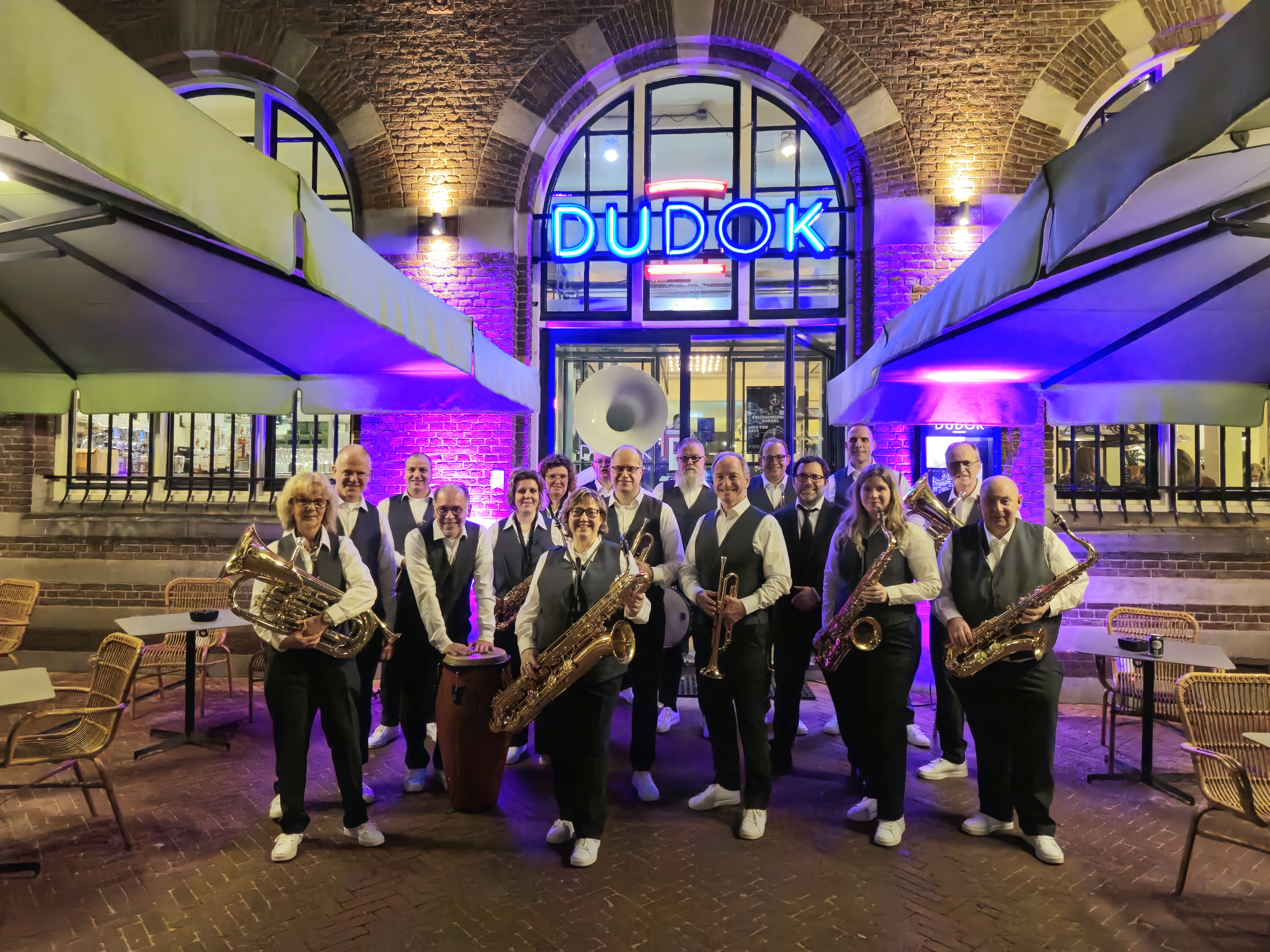 "Dudok bruist opnieuw met ATK Brass tijdens de Uitnacht Arnhem. Kom genieten met een hapje en drankje van de kunsten van ATK Brass want het belooft ook dit jaar weer bijzonder gezellig te worden in Dudok." Dudok Arnhem vindt u pal naast de Eusebiuskerk en de Sint Jansbeek, die sinds 2017 weer door het Arnhemse stadshart stroomt. Ons restaurant is gevestigd in het karakteristieke rijksmonument Van Ranzow’s Bank uit 1920. We zijn al jaren een begrip in onze mooie stad. De deuren staan dan ook open voor iedereen, van ’s ochtends vroeg tot ’s avonds laat. In de Zomer wordt ons pand omringd door een groot en vooral zonnig terras met tegenwoordig zelfs de uitbreiding onder de bomen van het Jonas Daniel plein. Aan de achterzijde bevindt zich onze prettige binnentuin waar veelvuldig gebruik van wordt gemaakt op drukke dagen. Dudok Arnhem is een plek in de stad, waar toeristen, stadsbezoekers, juristen, creatievelingen, theaterbezoekers en politici elkaar ontmoeten. Dudok Arnhem is met regelmaat het toneel van events, zowel door ons georganiseerd als een volledige afhuur van de gehele zaak. We kunnen dan ook feesten en partijen van 2 tot 400 mensen huisvesten.